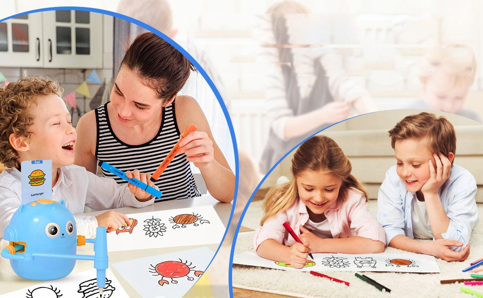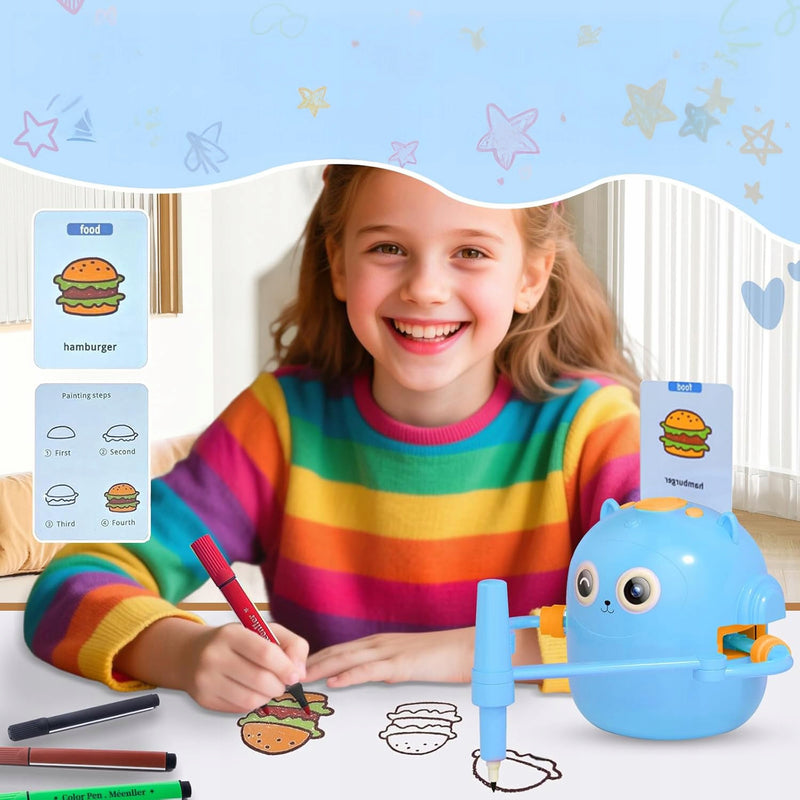Tak — robot rysuje prawdziwe, dokładne kształty, a dziecko łatwo odtwarza je krok po kroku. To nie jest projektor – to realny robot wykonujący realny rysunek.
